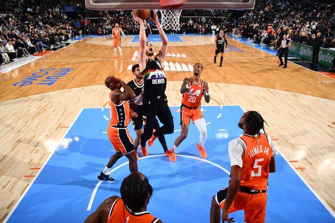 掘金:约基奇55分12篮板6助攻、戈登18分5篮板、穆雷15分5篮板4助攻4抢断、哈达威12分3助攻、布劳恩6分4篮板4助攻;