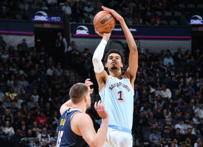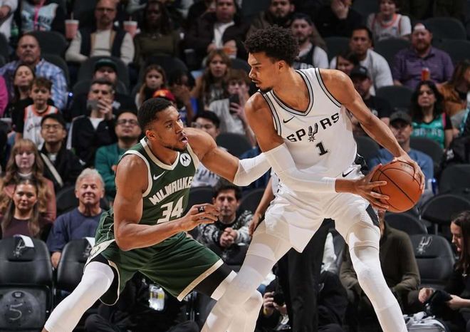 6人上双,这还没算因腿筋伤势一直缺阵的福克斯!上赛季交易得到福克斯后,马刺休赛期给了福克斯一份4年2.29亿顶薪合同,这个合同很合理,因为等到福克斯合同快到期时,球队今夏榜眼哈珀自然顶上,顺利完成新老交替。除此之外,球队4年4100万签下凯尔特人替补内线科内特,送走韦斯利和布兰纳姆换来了奥利尼科,加强空间和内线轮转深度,看起来马刺阵容没那么抢眼,但所有一切都在围绕文班亚马悄然构建阵容。上赛季文班亚马因为血栓问题,只打了46场比赛,但数据依旧夸张:场均24.3分11篮板3.7助攻3.8盖帽!